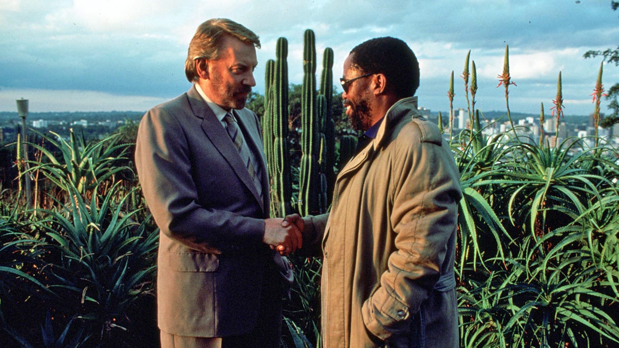 A Dry White Season (1989). Directed by Euzhan Palcy. Starring Donald Sutherland, Janet Suzman, Jürgen Prochnow.